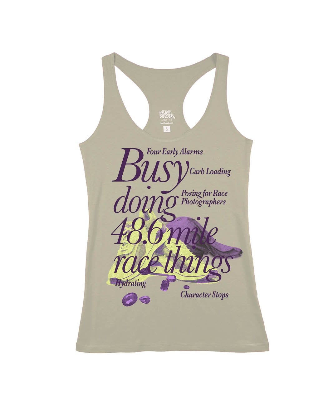 - Women's Racerback: material: 66% rayon from bamboo, 28% cotton, 6% spandex