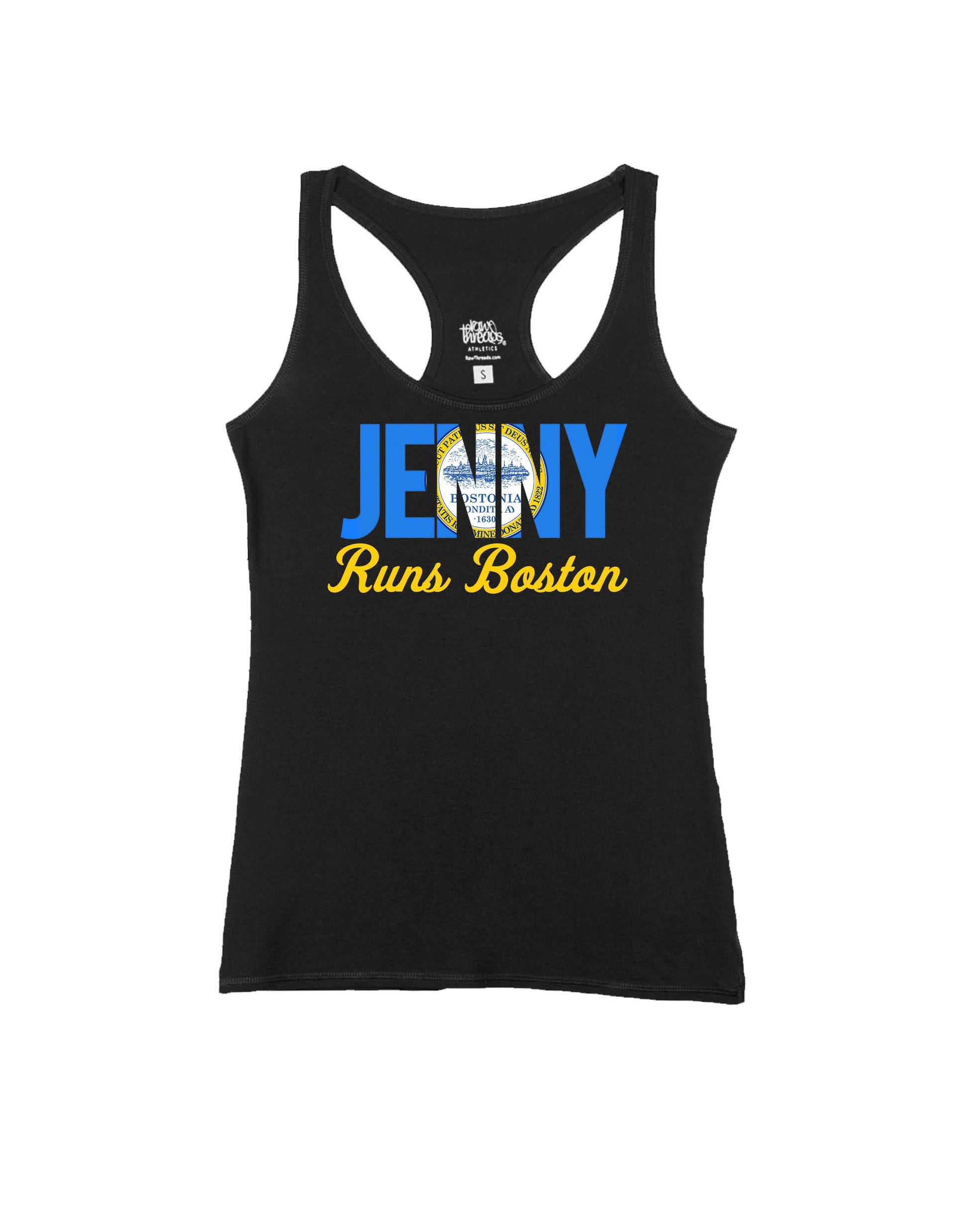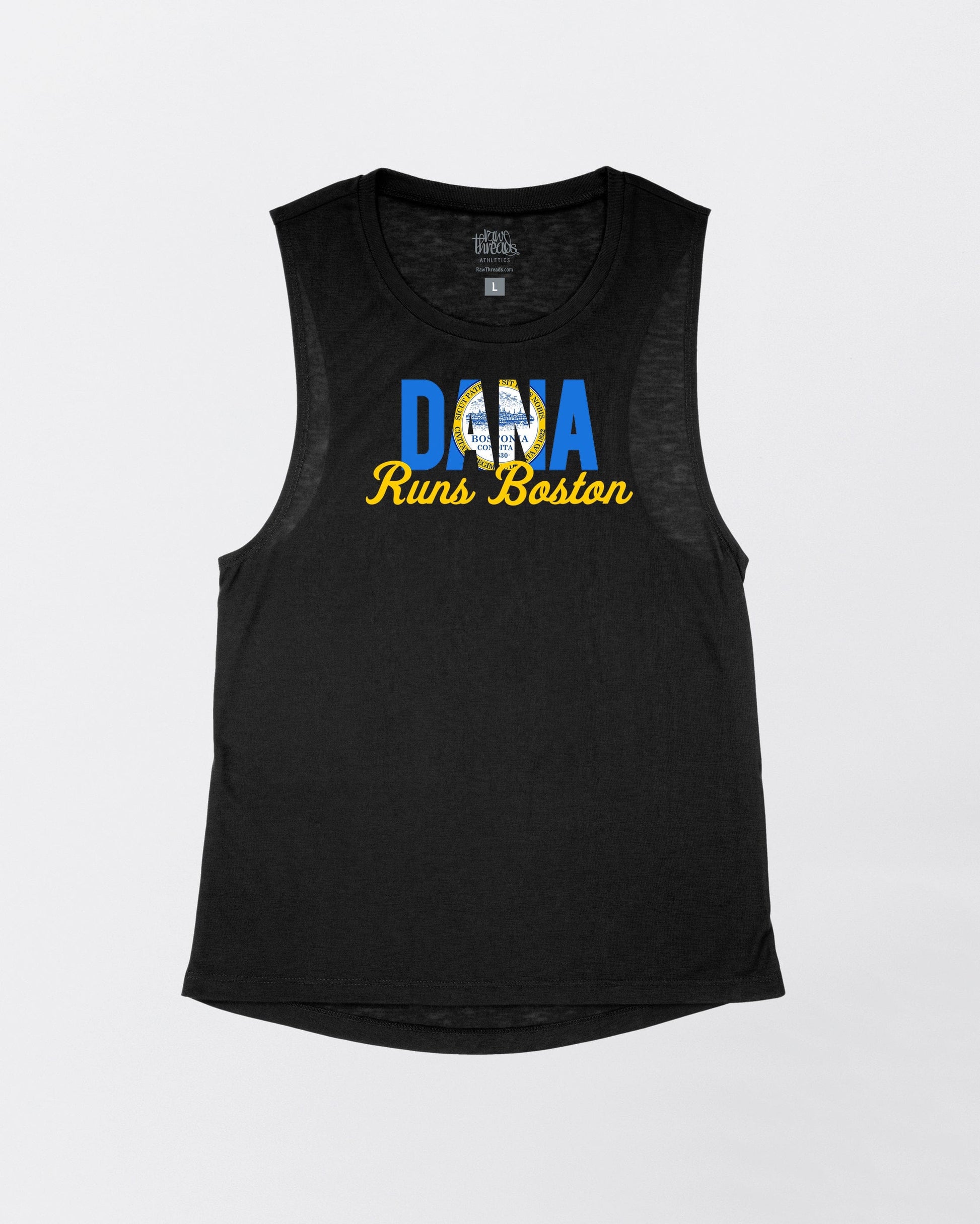 Customize this Boston Flag Flowy Tank and stand out in the crowd! Have your name on display as you run the marathon and get cheered on by the audience. Show off your Boston pride in style with this customizable tank top!